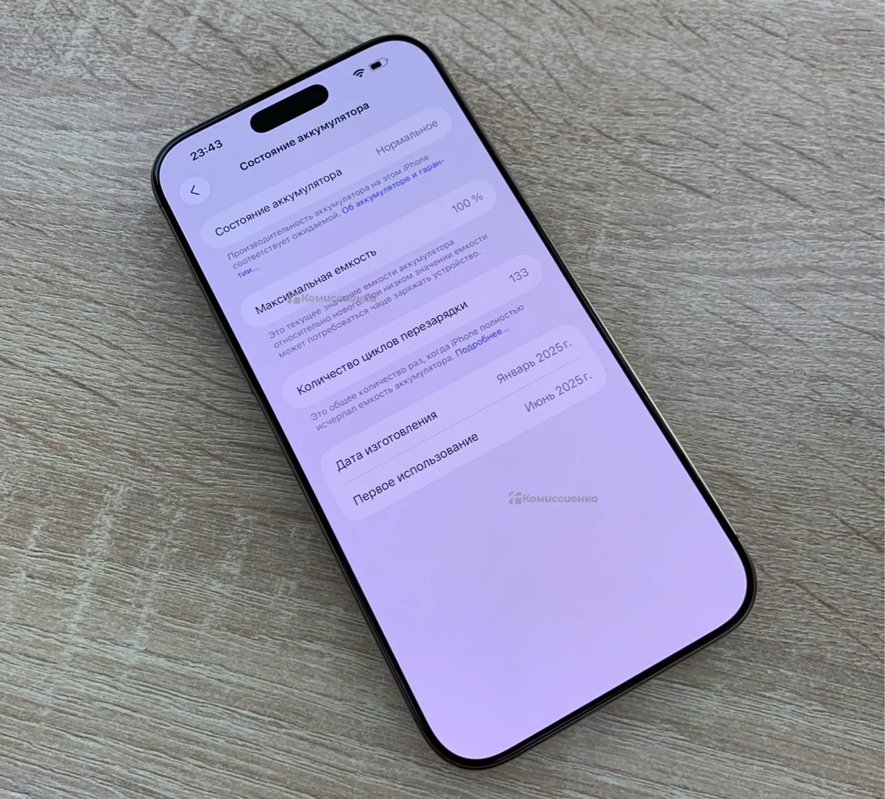 Аккумулятор 100% 133 цикла