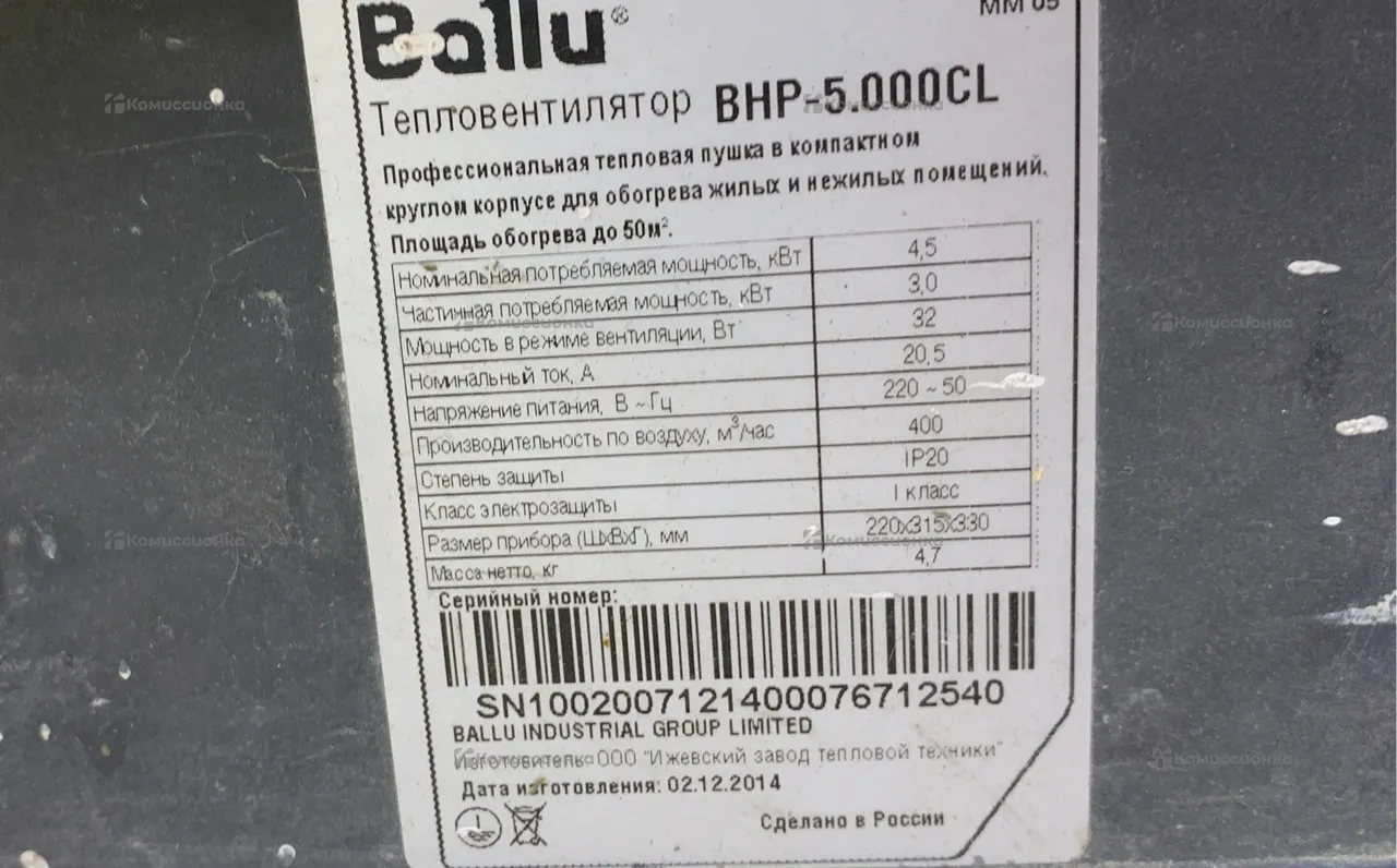 Продажа Тепловая пушка Bally BHP-5.000CL б/у по выгодной цене. Стоимость