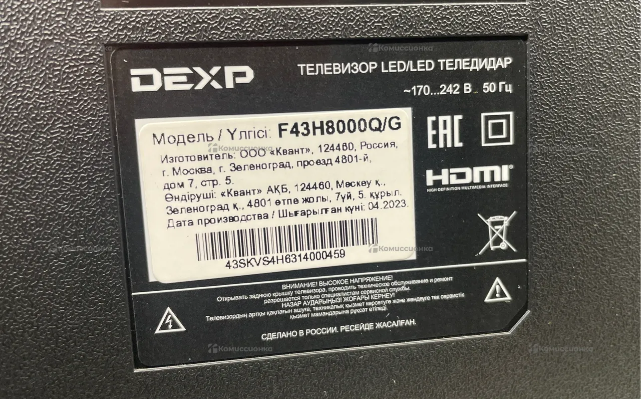 Продажа Телевизор Dexp F43H8000Q/G б/у по выгодной цене. Стоимость